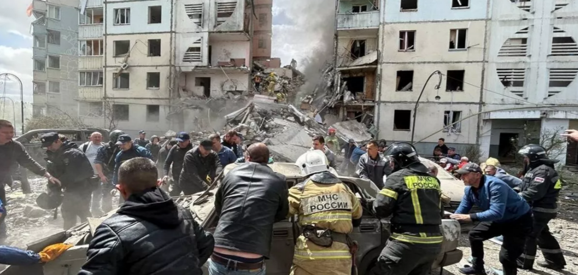 В Белгороде в доме №55 на улице Щорса обрушился подъезд многоэтажного жилого дома c первого по десятый этаж. Губернатор Вячеслав Гладков утверждает, что в здание попал снаряд ВСУ. Однако в Минобороны сообщили, что подъезд жилого дома «поврежден фрагментами одной из сбитых ракет».